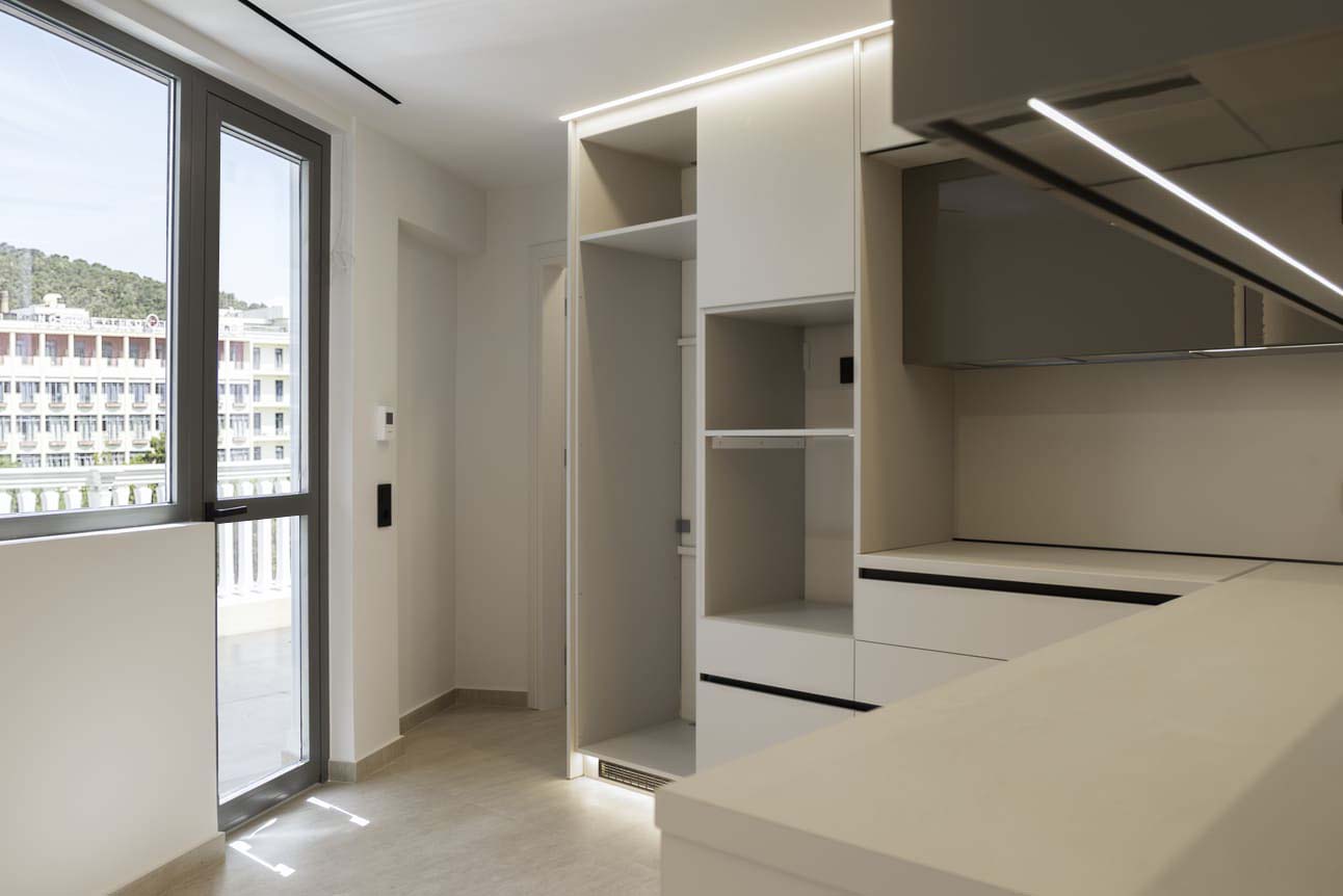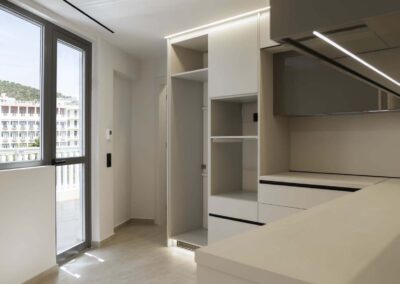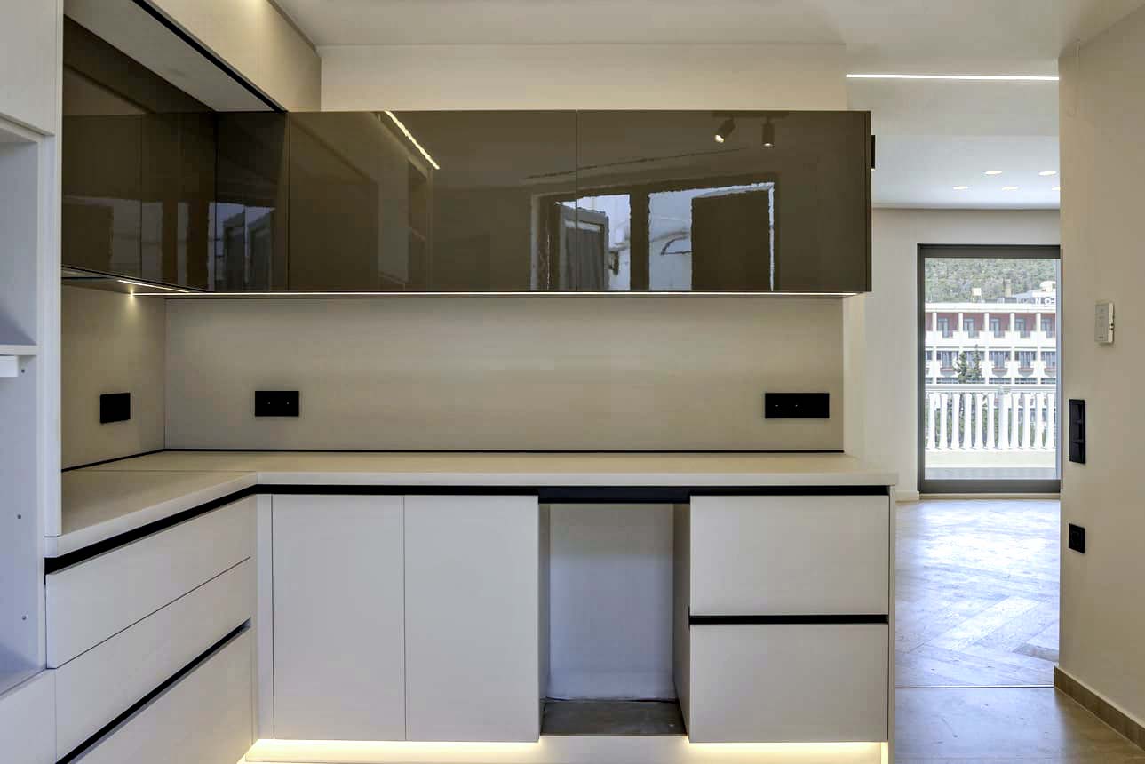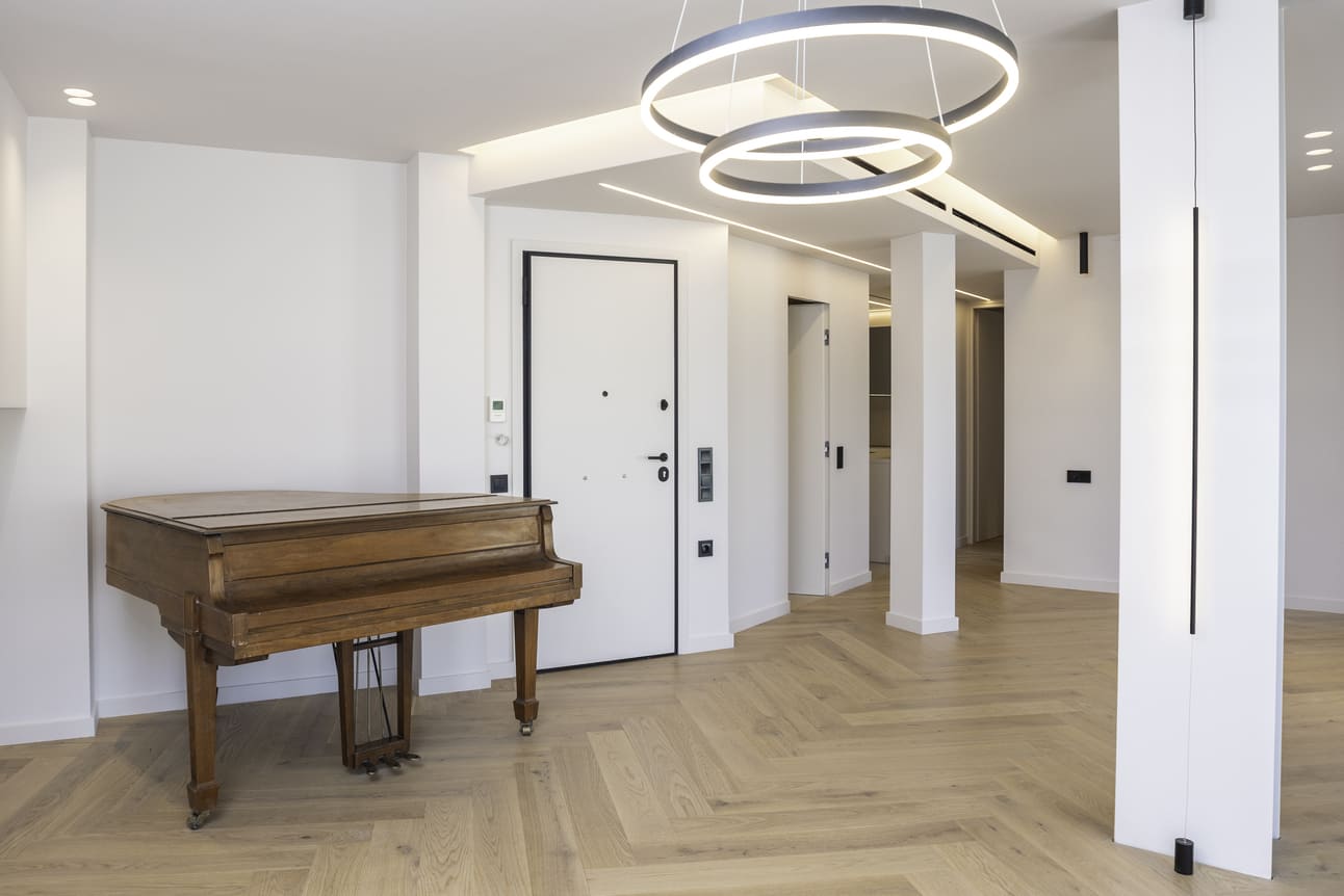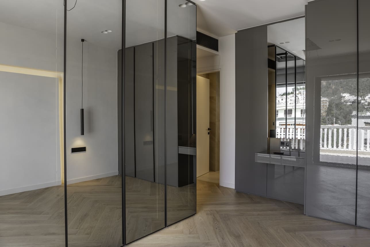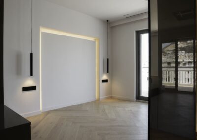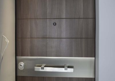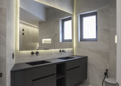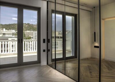 Ολική ανακαίνιση Δικηγορικού γραφείου σε πολυκατοικία στο κέντρο της Αθήνας. Για την τελική διαμόρφωση του χώρου ενώθηκαν αρχικά δυο διαμερίσματα. Μετά την ολοκλήρωση των οικοδομικών εργασιών τοποθετήθηκαν τα πατώματα, έγινε η προσθήκη των επίπλων, των θερμαντικών σωμάτων, των ειδών υγιεινής και των καινοτόμων συρόμενων συστημάτων. Η ανακαίνιση ολοκληρώθηκε με την διαρρύθμιση του φωτισμού.