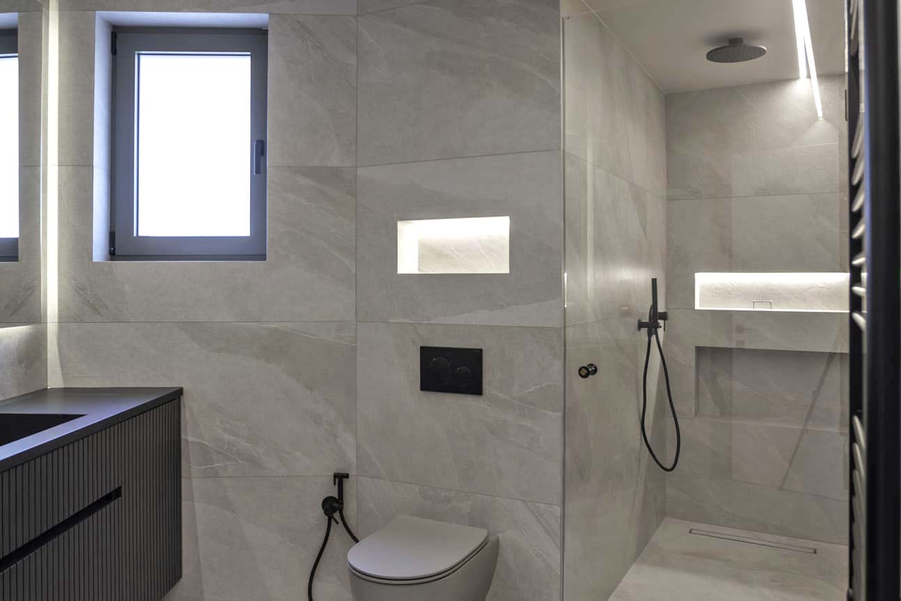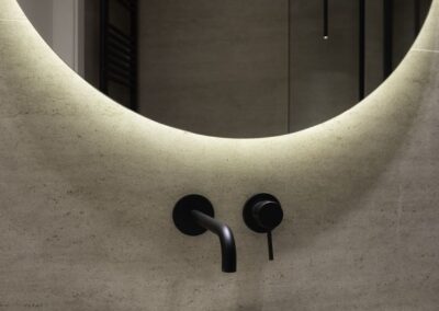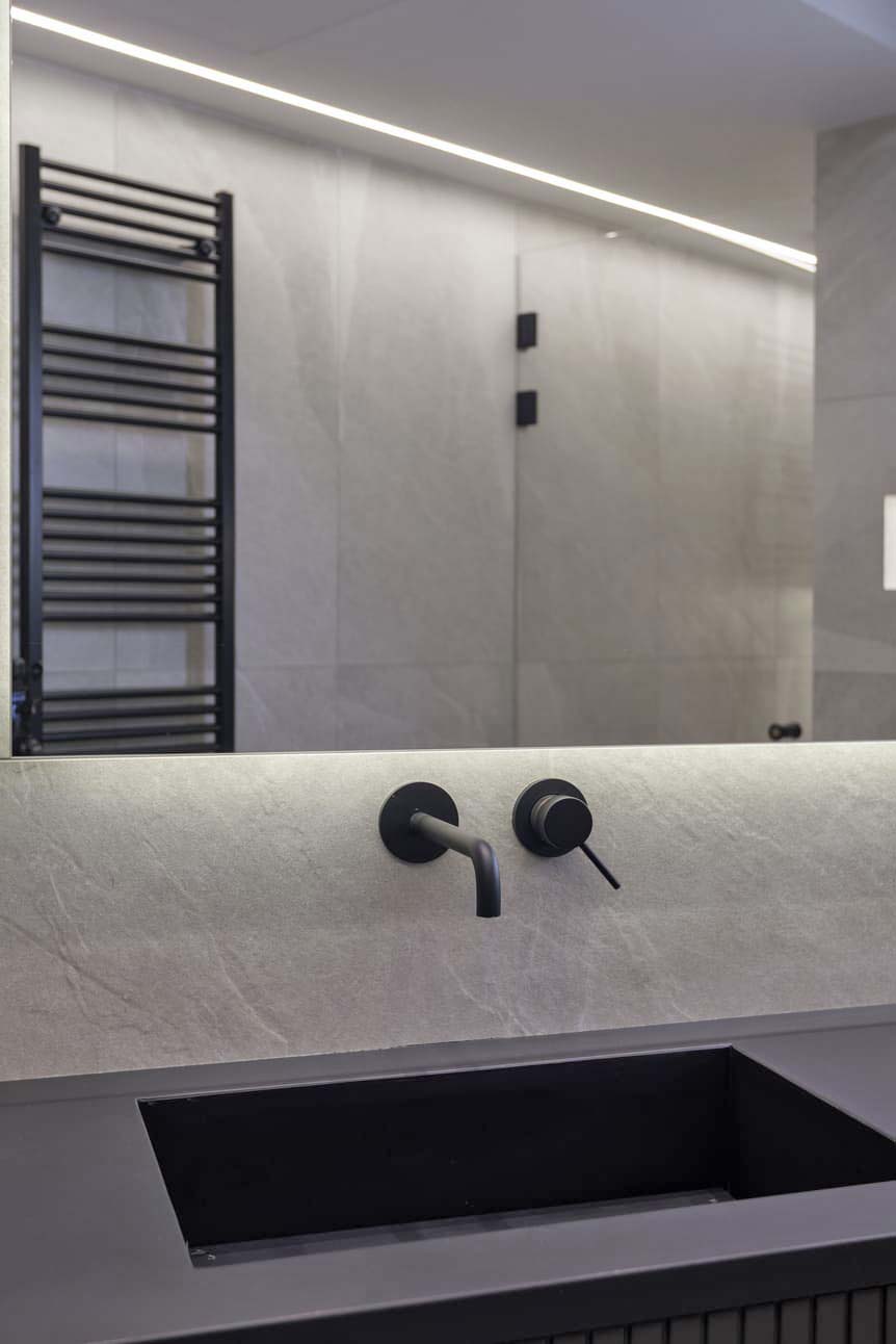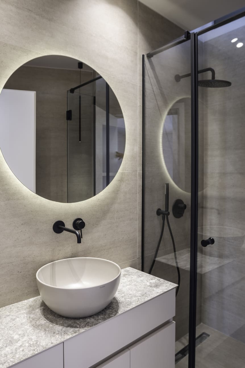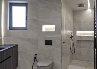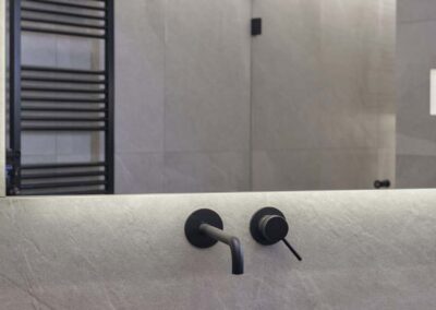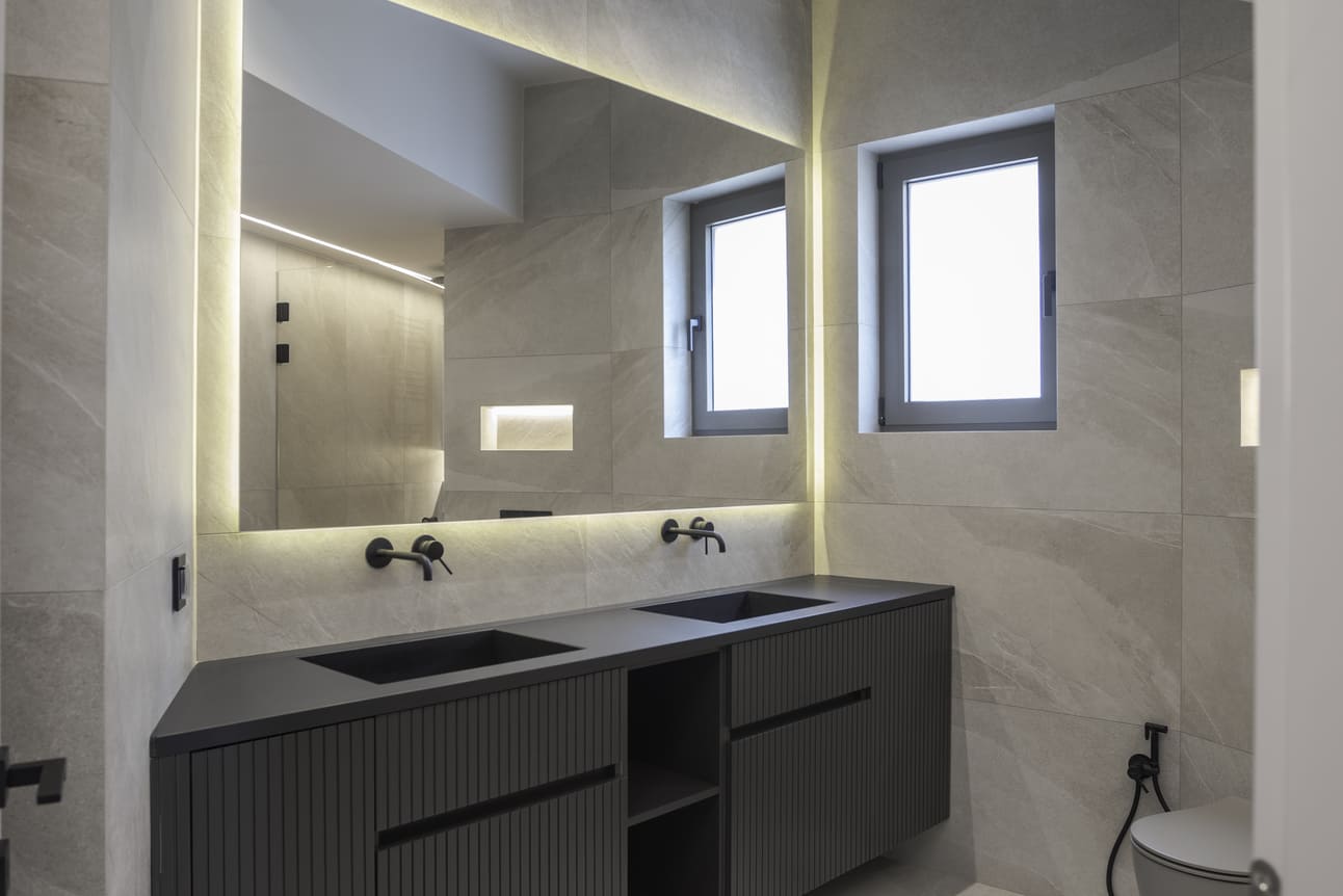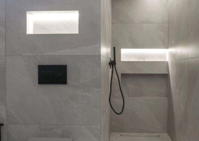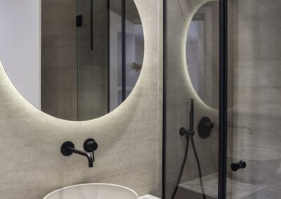 Ολική ανακαίνιση Δικηγορικού γραφείου σε πολυκατοικία στο κέντρο της Αθήνας. Για την τελική διαμόρφωση του χώρου ενώθηκαν αρχικά δυο διαμερίσματα. Μετά την ολοκλήρωση των οικοδομικών εργασιών τοποθετήθηκαν τα πατώματα, έγινε η προσθήκη των επίπλων, των θερμαντικών σωμάτων, των ειδών υγιεινής και των καινοτόμων συρόμενων συστημάτων. Η ανακαίνιση ολοκληρώθηκε με την διαρρύθμιση του φωτισμού.